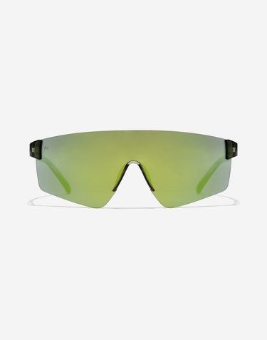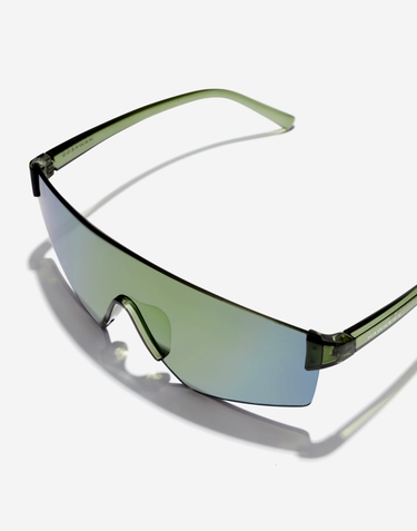 Diseño de gafas de sol estilo urban-sport que combina lente de máscara al aire con visión panorámica y puente nasal y varillas de TR90. Una silueta ligera y cómoda que recupera la esencia de los 2000 perfecta para marcar tendencia en el día a día o en tus Après Ski. Disponible en varios colores de lentes y monturas en acabados brillo y mate.