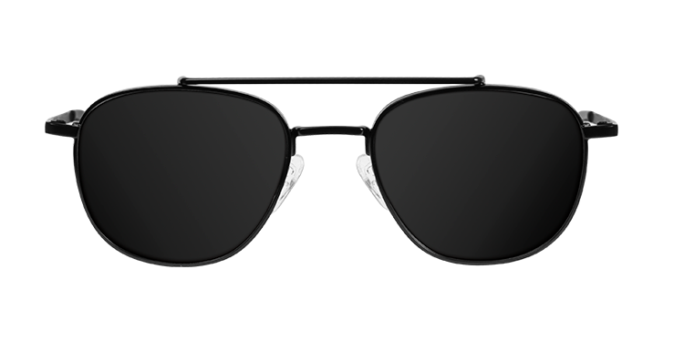Montura metálica negro mate con terminales en acabado negro y lentes de color negro