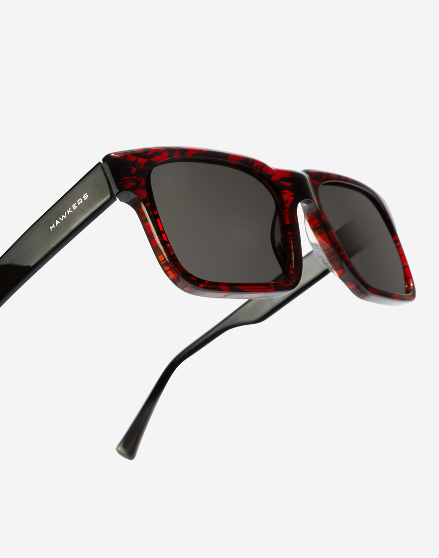 Hawkers feat Anuel. Presentamos Inwood Red Black, un diseño que saca el lado más gangster y elegante del artista pionero del movimiento del trap latino. Este modelo combina montura en acetato de frontal jaspeado en rojo y negro con patillas bold negras y lentes en gris oscuro. Un diseño robusto y sofisticado destinado a gobernar tu versión más irreverente. Real hasta la muerte.