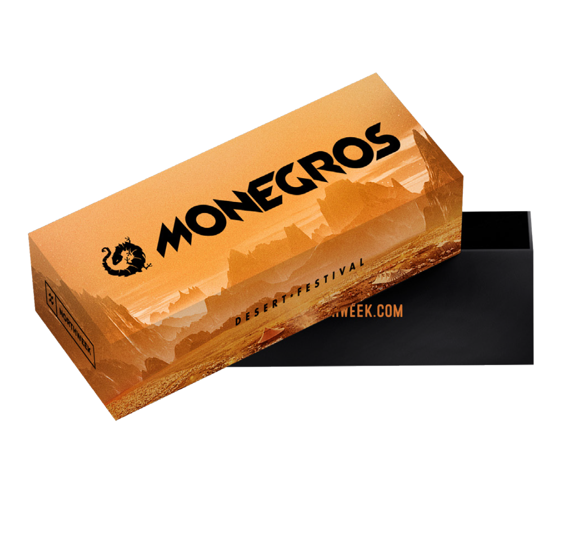 Modelo Regular Edición especial monegros. Unisex Montura en policarbonato de alta calidad Gafas de sol polarizadas Lentes triacetato con tecnología AntiScratch con protección UV 400 Lentes categoría 3 Medidas: Frontal 140 mm; Alto 47 mm; Patillas 143 mm Incluye: Funda en microfibra personalizada, caja personalizada y set de pegatinas decorativas