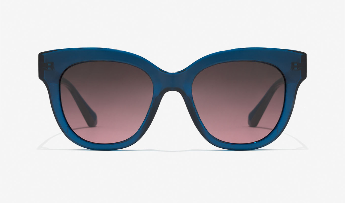 Las siluetas de los modelos más elegantes y sofisticados de los 70 inspiran este diseño de gafas de sol estilo mariposa. Un modelo que combina montura redonda transparente azul marino con lentes categoría 3 color vino.