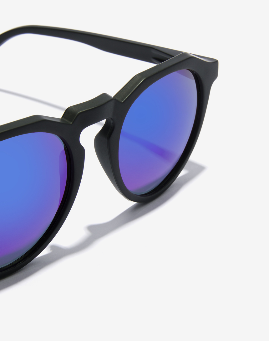 Nuestro icónico y siempre popular diseño Warwick, con sus lentes redondeadas y su puente en forma de ojo de cerradura, se fabrica ahora en nuestra primera fábrica en España utilizando las últimas tecnologías, dando como resultado una montura aún más ligera y resistente. Presentamos RAW, nuestra primera colección con sello de calidad Made In Spain. Este modelo cuenta con una montura negra mate y lentes azul cielo.